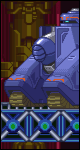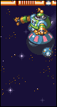 Another half-stage boss. Just fire on the glass dome on top of it with fully charged Rock Buster with Mega Man or Bass's Forte Busters with the Super add-on. Kill the big fists before they can destroy the flying platforms, and destroy the little red nose as soon as he shows it (if you don't kill it in time, you will face to a super-weapon that hits all the screen). From time to time, it will throw out little bubbles of health, weapon energy, or lanterns. The lanterns fill the entire screen with light for 1-2 seconds, so try not to hit them if possible. Bass must jump from one platform to another, while Mega Man can walk most of the time.