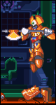 Slide at the beginning until you reach the opposite corner and jump at the last moment (double-jumping at almost any time with Bass will work). Wait a little to see if he will jump again or not, as that is only time to place your Copy Vision correctly. If he does jump, place your Copy Vision and avoid the bullets. They will go toward the Copy Vision (it acts as a decoy and everything goes toward it). If he has some bullets around him, just place your Copy Vision as soon as they appear. If he fires weird shocking bars (which looks like the thing he has on the shoulders), just kill the ones that might pose a threat with your Arm Cannon. Then the story repeats itself. He jumps, dashes... forever like that... until he goes into the machinery on the ceiling that he first came out of. ACT FAST. Jump on one of the platforms, and place a Copy Vision AS HIGH AS POSSIBLE. It will rapidly kill the 2 red bars, and he won't have recovered too much energy. He can heal himself as many times as he wants to do it (in general 1 or 2 times) but IT IS POSSIBLE THAT YOU MAY NEVER DEFEAT HIM. He is one of the hardest bosses, so be prepared for a fight.