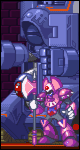 (11/03/01) v. 1.45: Added three new techniques to Mega Man's roster that I had forgotten about: Rush Search, Beat, and Eddie. Also included pictures of both Mega Man and Bass in Master Boss Weapon outfits.